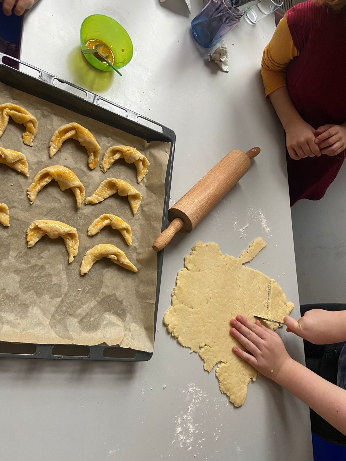 Es entstanden Sternenlichter und Laternen, sorgfältig gestaltet und mit vielen Ideen verziert.. In den Töpfer- und Backgruppen wurden fleißig Martinshörnchen und Martinsgänse geformt und getöpfert oder gebacken. Die gebackenen Leckereien wurden später in der Stadt verteilt, um den Gedanken des Teilens weiterzugeben – und natürlich auch selbst probiert.